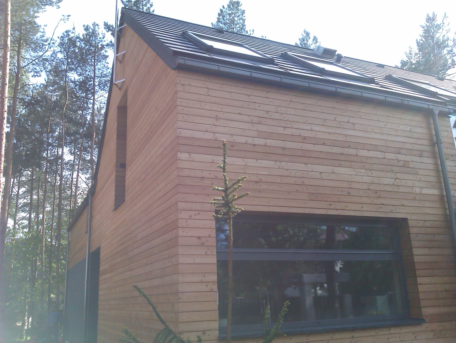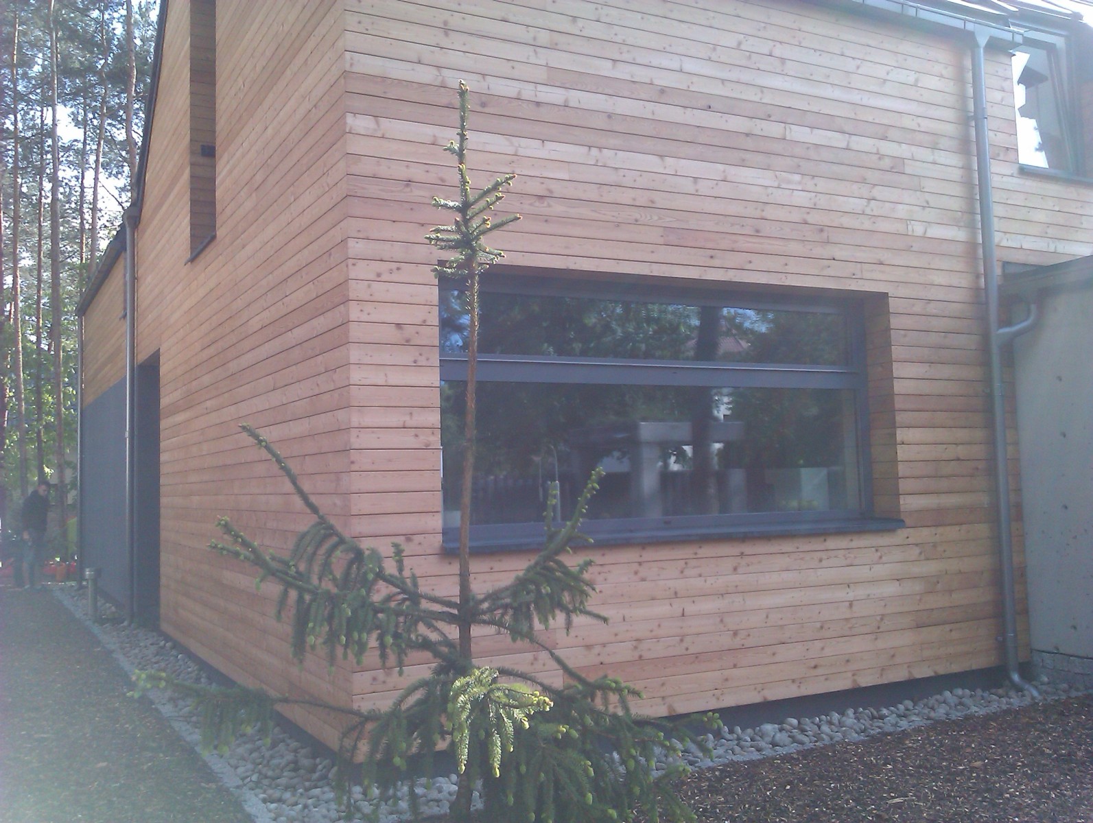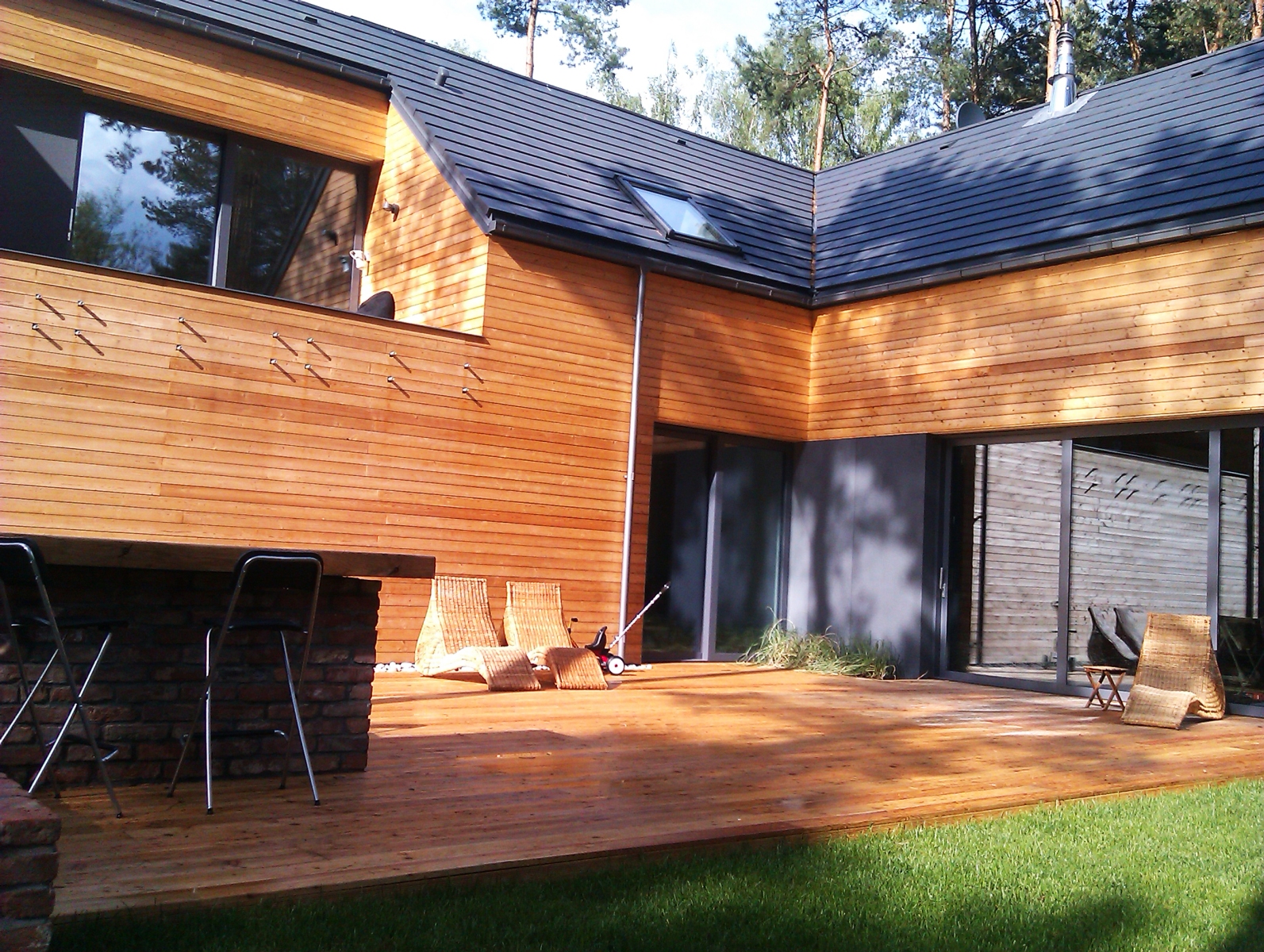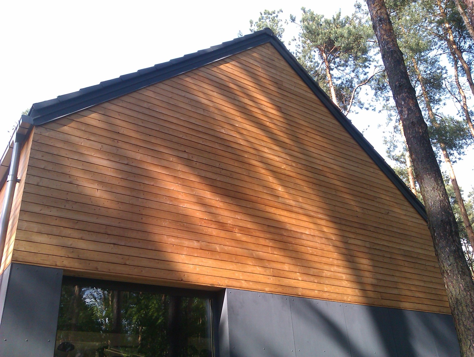 Elewacje drewniane - Elewacja, taras, zabudowa bramy modrzew syberyjski