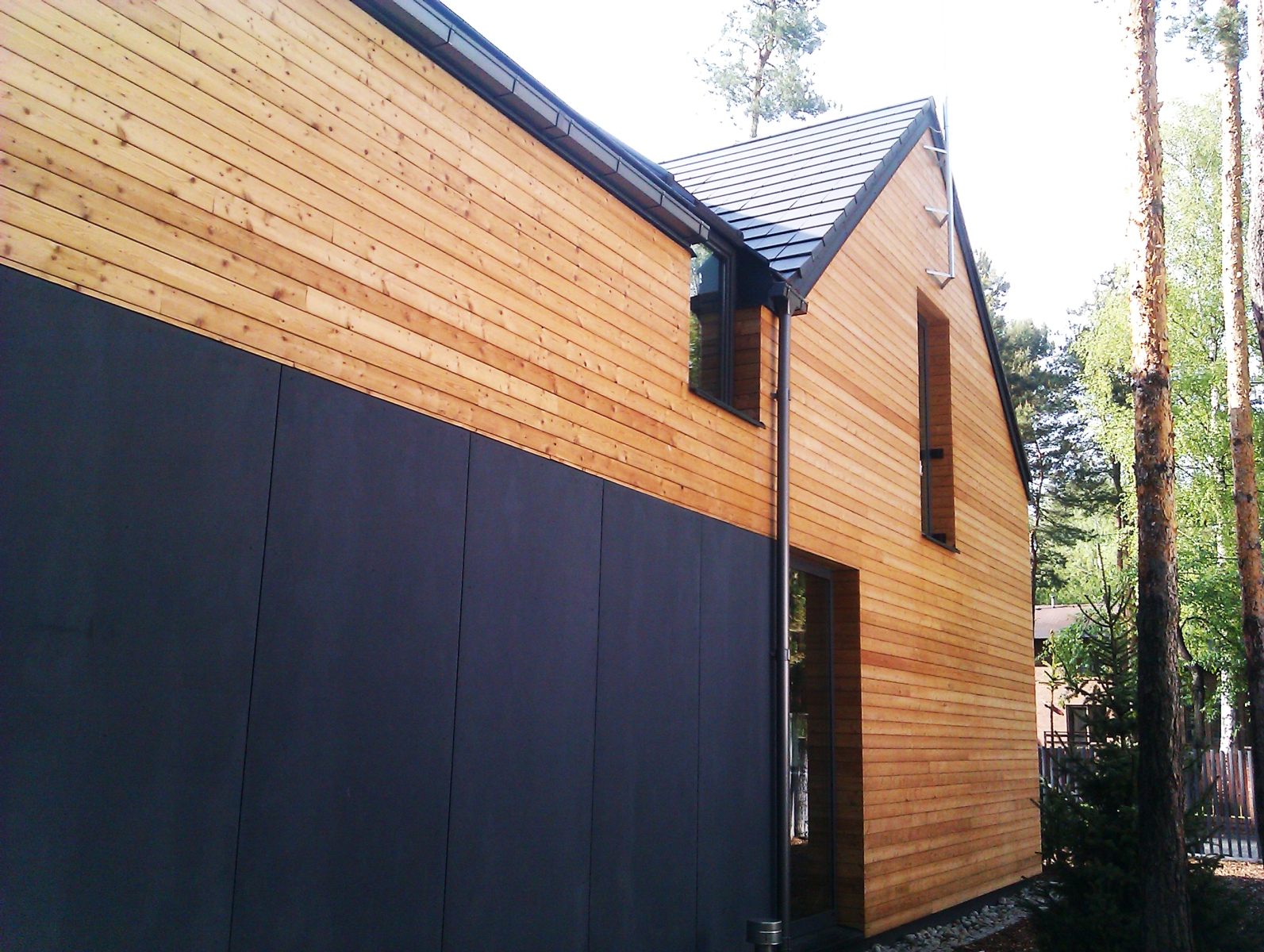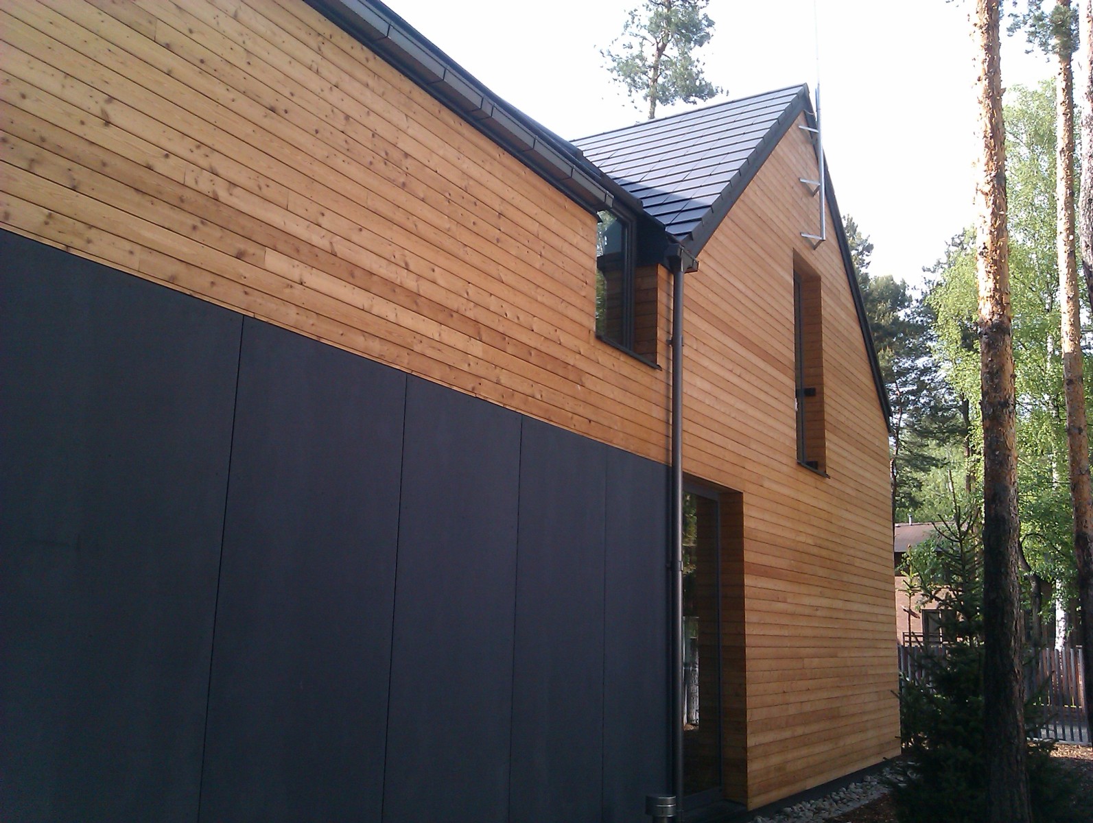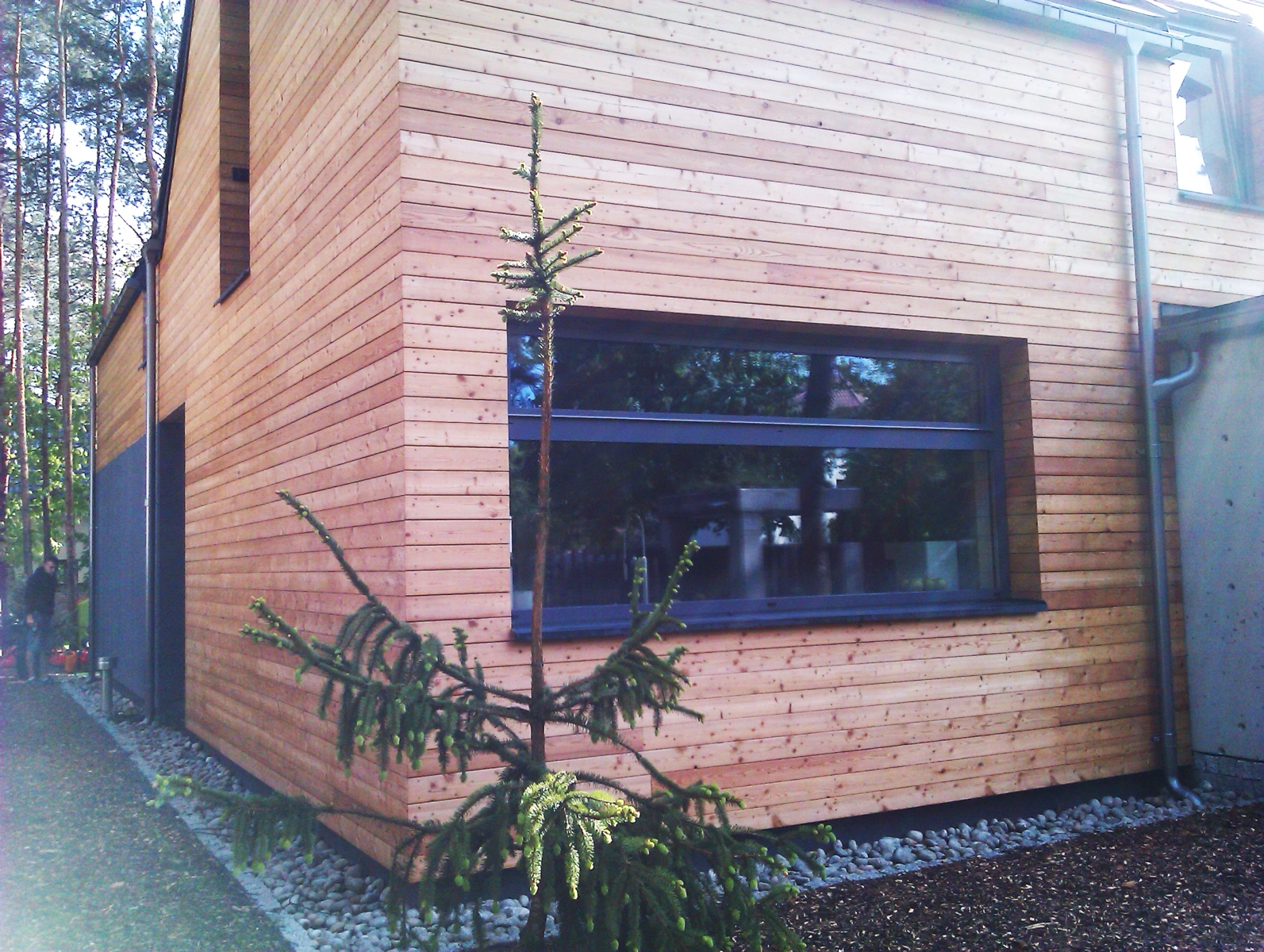 Elewacje drewniane - Elewacja, taras, zabudowa bramy modrzew syberyjski
