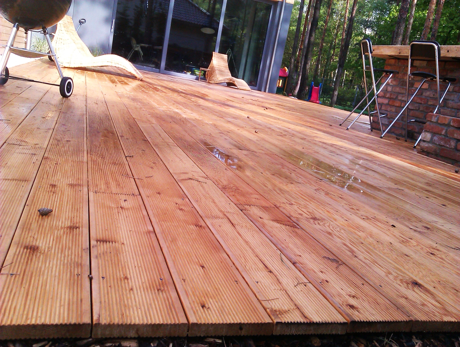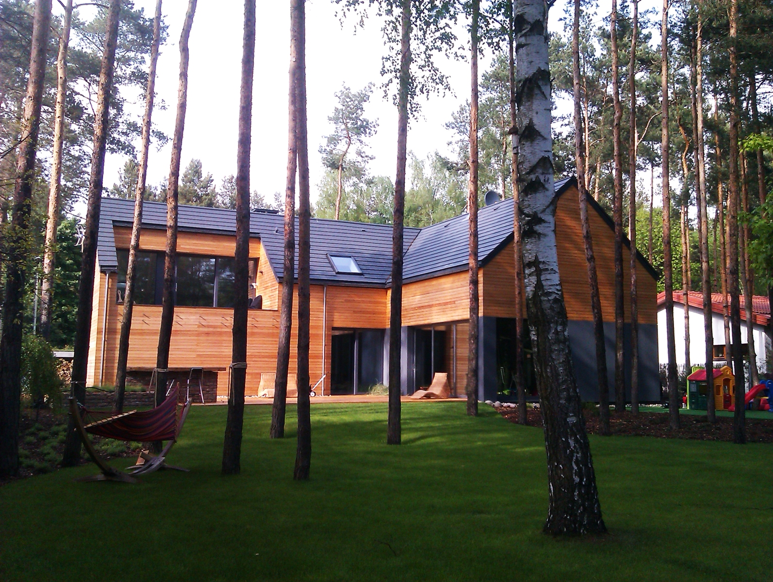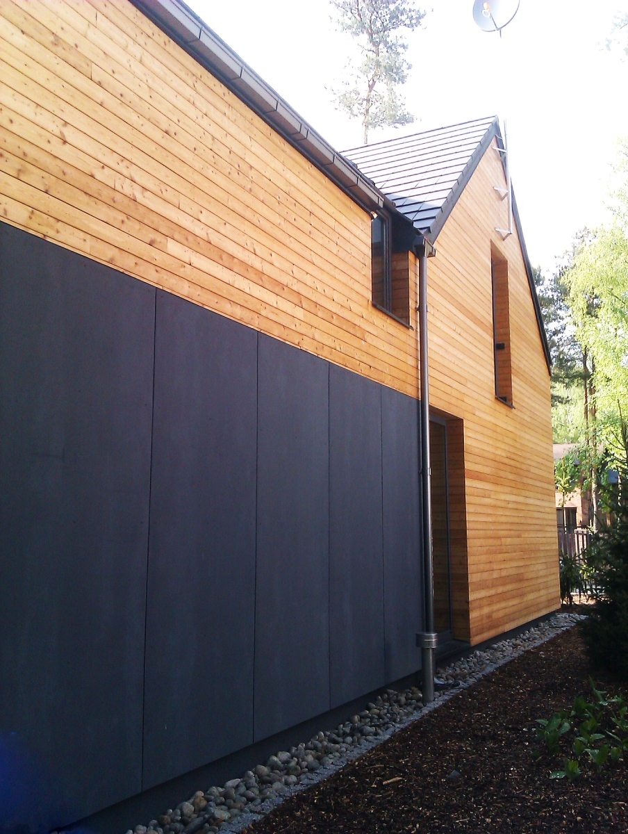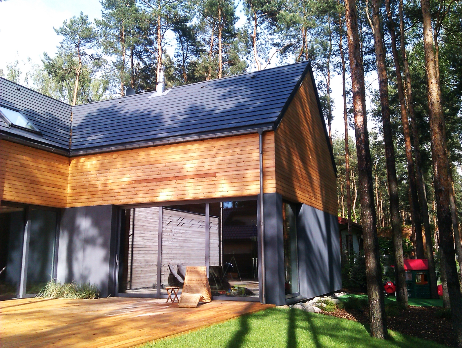 Elewacje drewniane - Elewacja, taras, zabudowa bramy modrzew syberyjski
