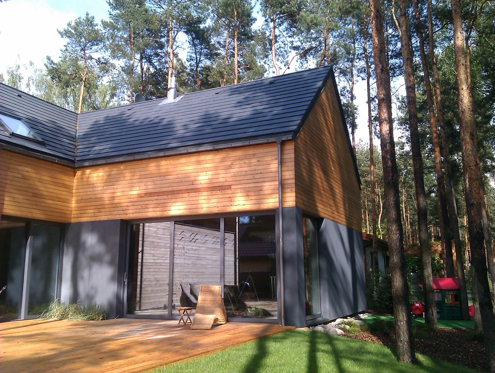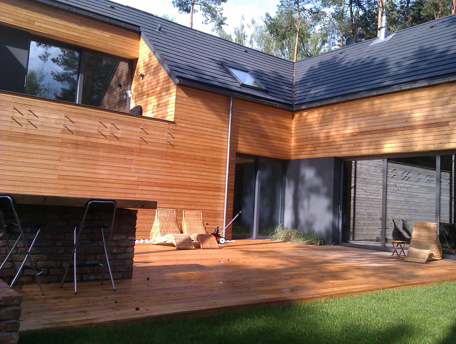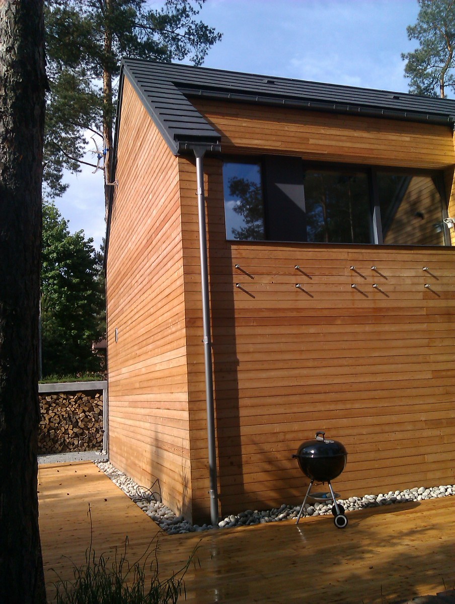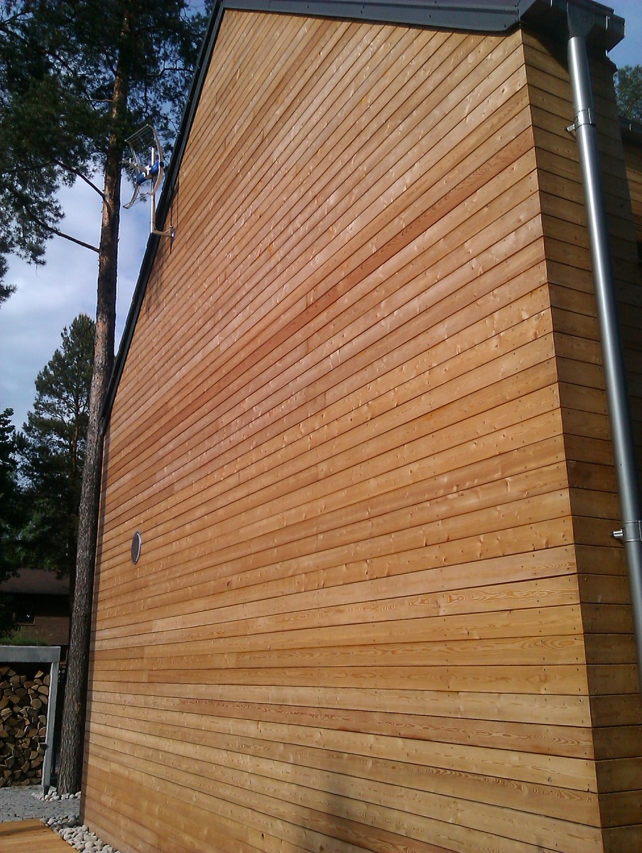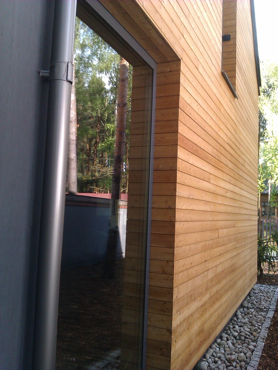 Elewacje drewniane - Elewacja, taras, zabudowa bramy modrzew syberyjski